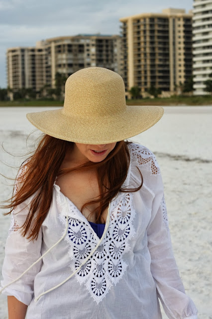 Coverup: J.Crew (similar), Swimsuit: J.Crew, Hat: J.Crew, Flip-Flops: Tory Burch, Sunnies: Tory Burch