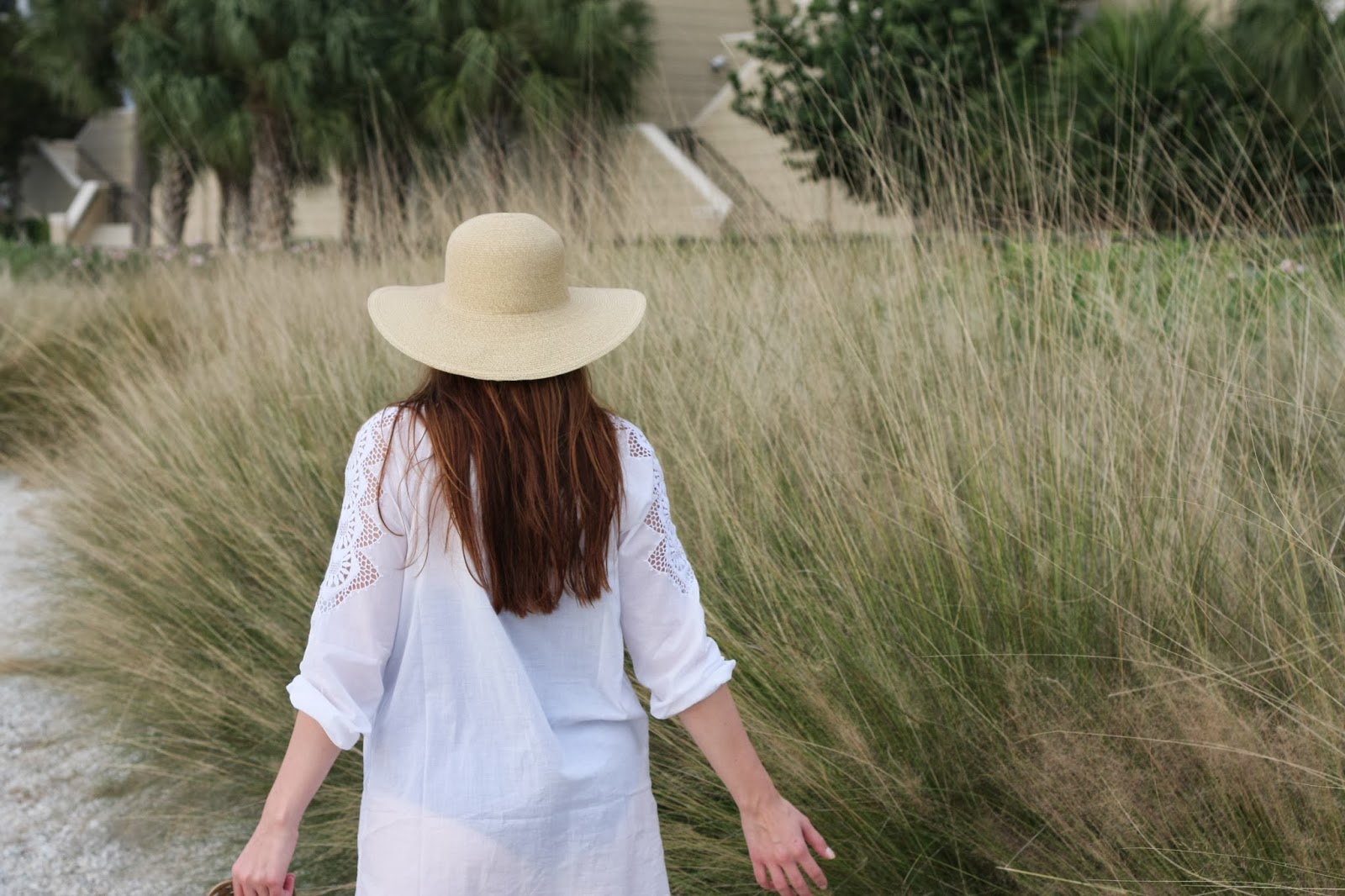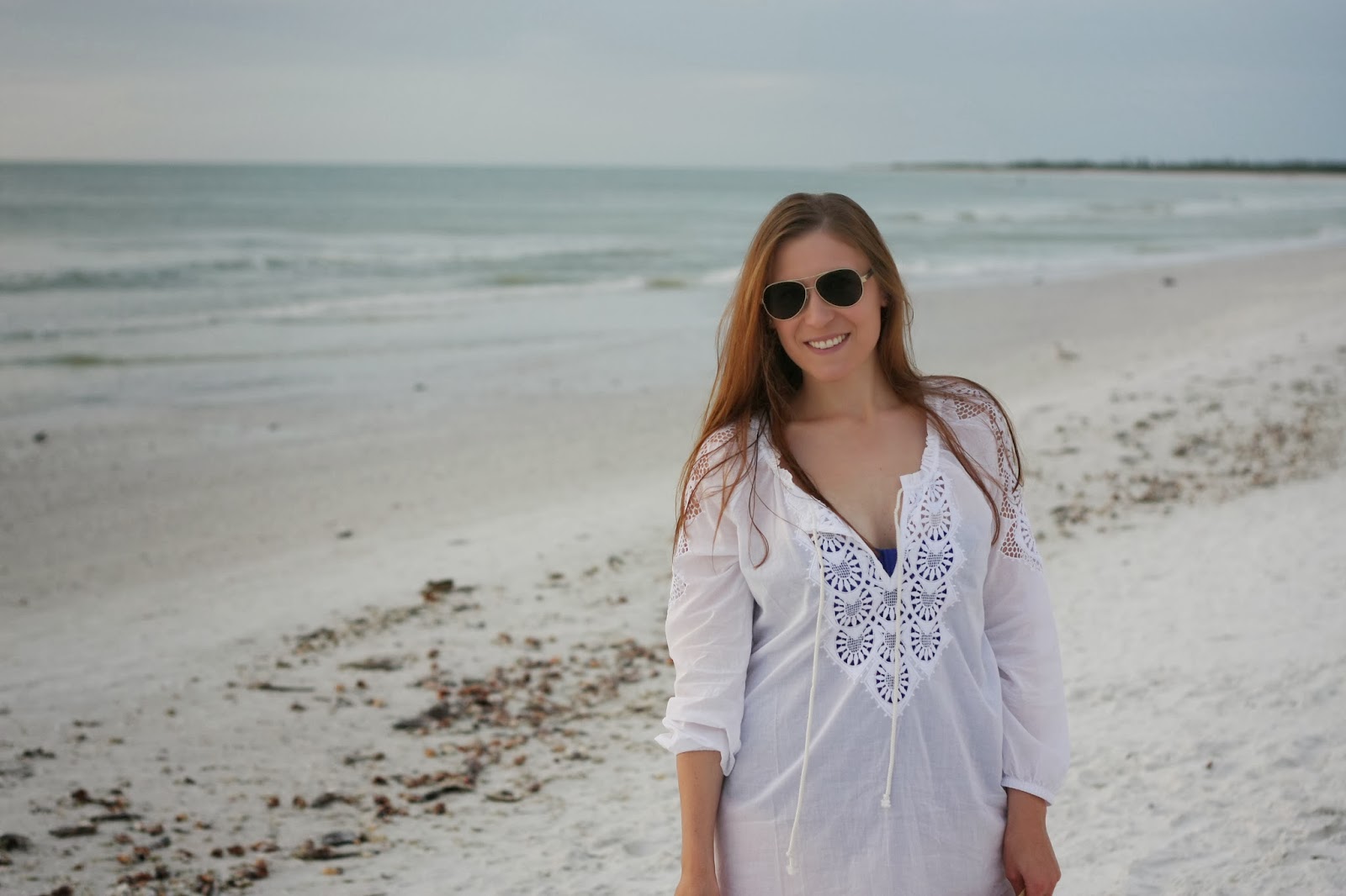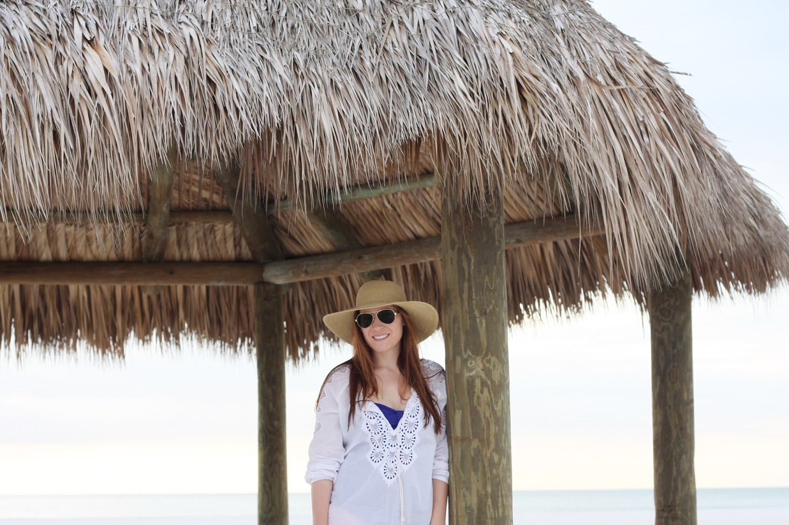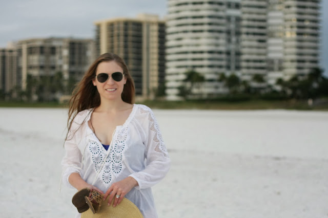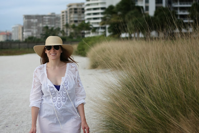 Coverup: J.Crew (similar), Swimsuit: J.Crew, Hat: J.Crew, Flip-Flops: Tory Burch, Sunnies: Tory Burch