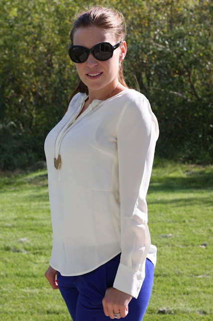 Shirt: J.Crew, Pants: J.Crew , Necklace: Madewell, Shoes: Adam Tucker (similar), Nine West (similar) Sunglasses: Ray-Ban