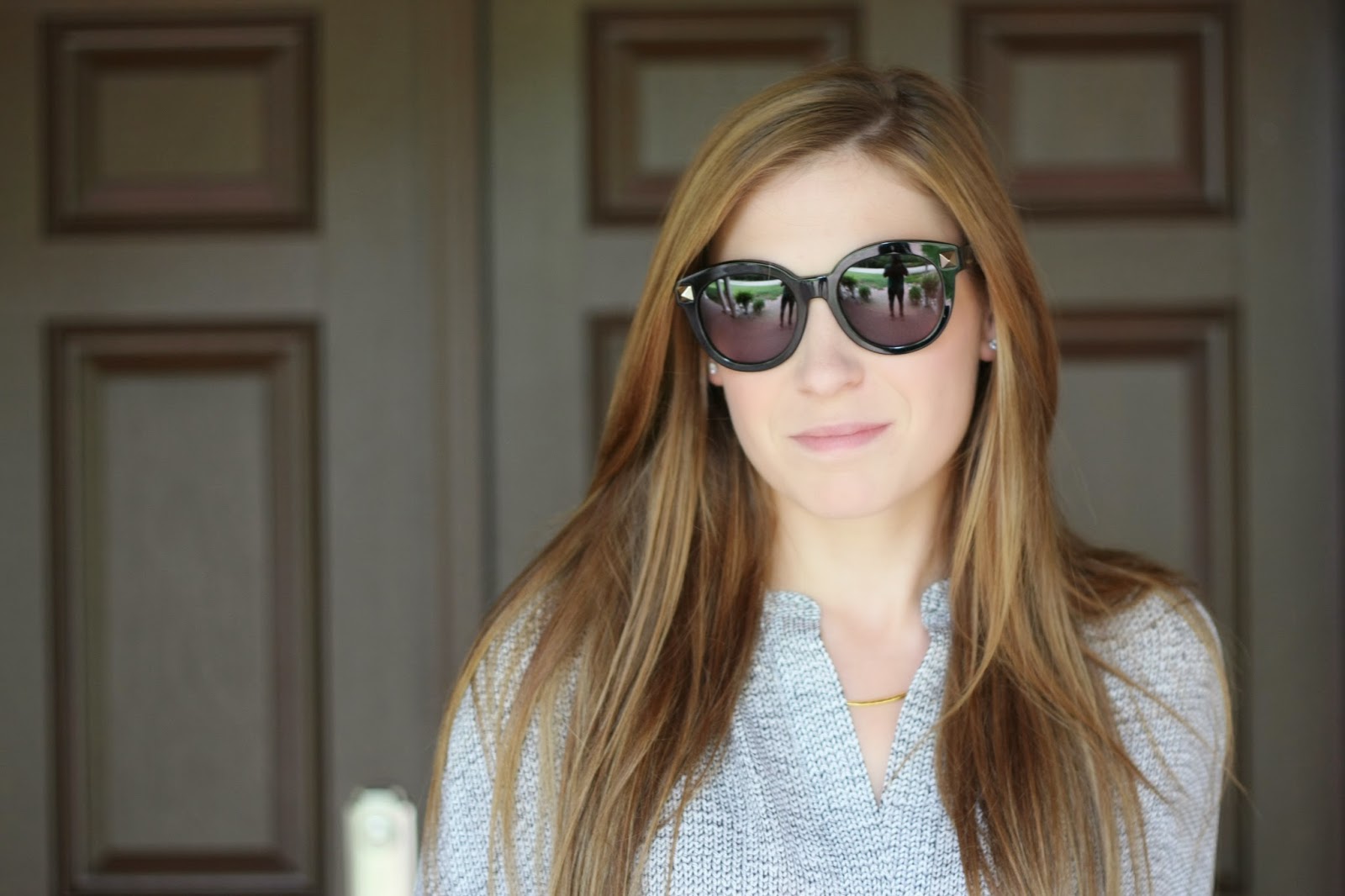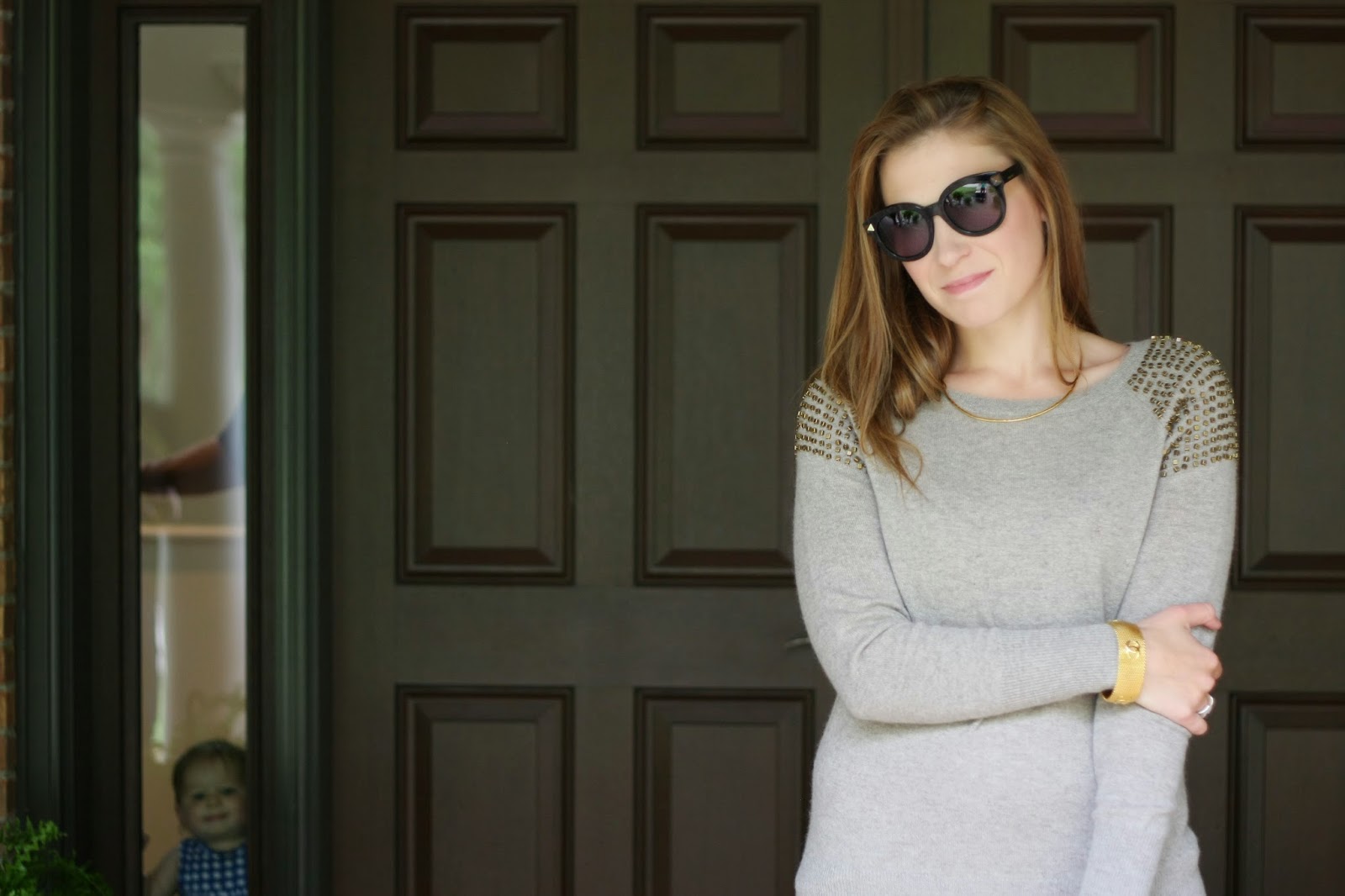 Sweater: Loft (on sale for $20), Jeans: Tory Burch, Purse: Tory Burch, Shoes: J.Crew (similar), Necklace: J.Crew (similar), Sunglasses: Ray-Ban It was starting to feel like Spring here and then it snowed again yesterday. I think we all forgot how to drive around here! My daughter, Dahlia, was so impressed by the snow I didn’t know if