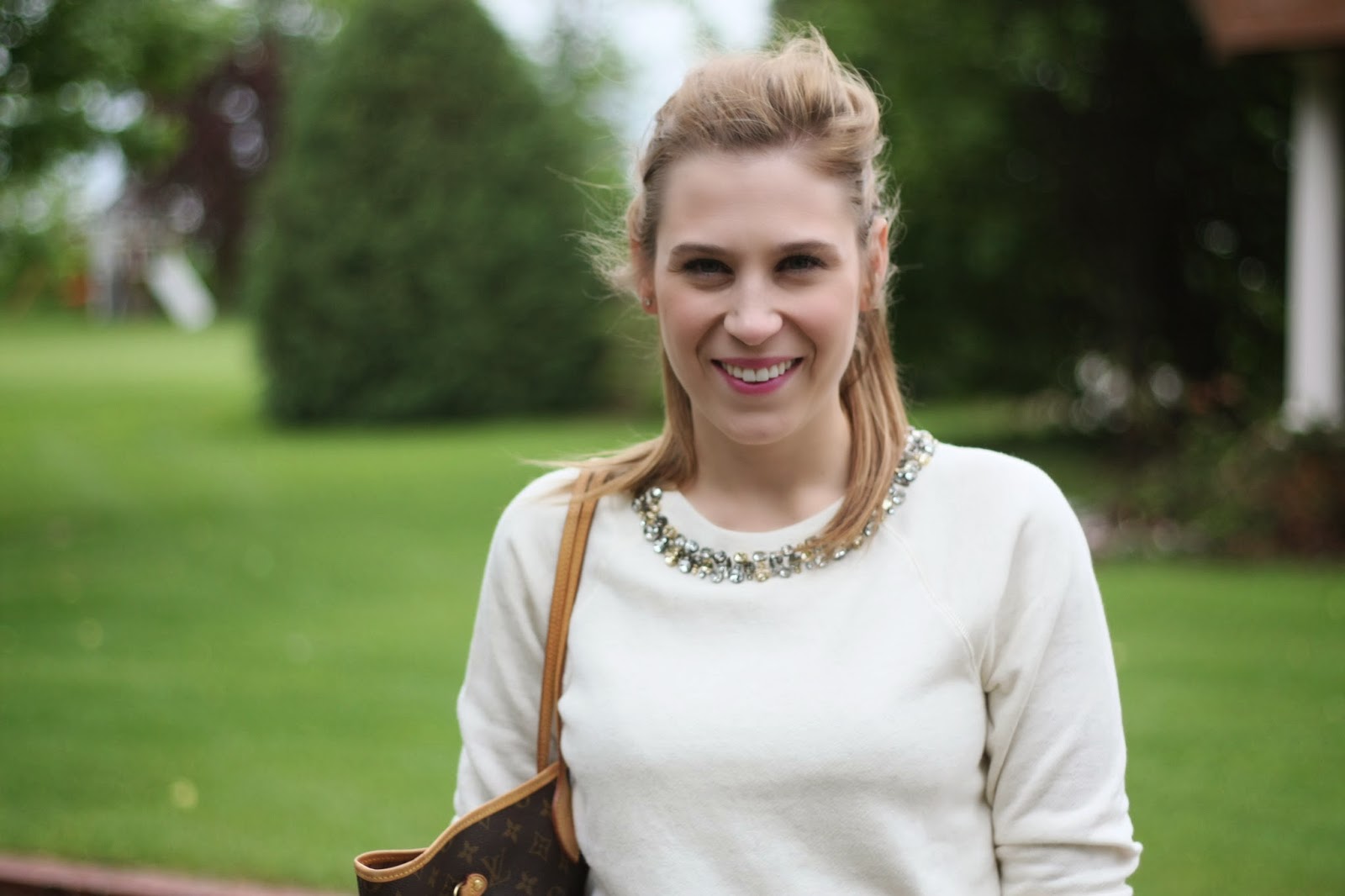Tee: Joie (on sale), Jeans: Vince, Shoes: French Connection (on sale) c/o, Watch: Kate Spade c/o, Purse: Louis Vuitton (similar), Necklace: J.Crew (similar), Bracelet: Stella & Dot,