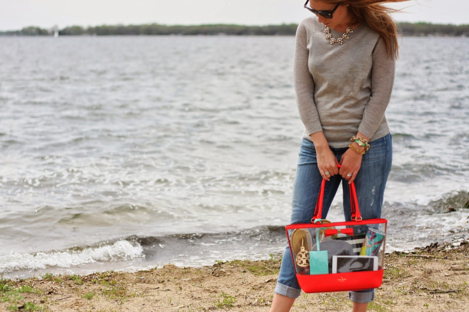 Tee: Free People, Shorts: Treasure & Bond (really cute on sale pair of shorts), Sandals: Tory Burch, Bracelet: Stella & Dot, Sunglasses: Prada, Bag: Barrington Gifts (SANTAJULY for 10% off) In the summer my family and I travel to the lake a lot. I found this monogram bag that’s perfect for weekend