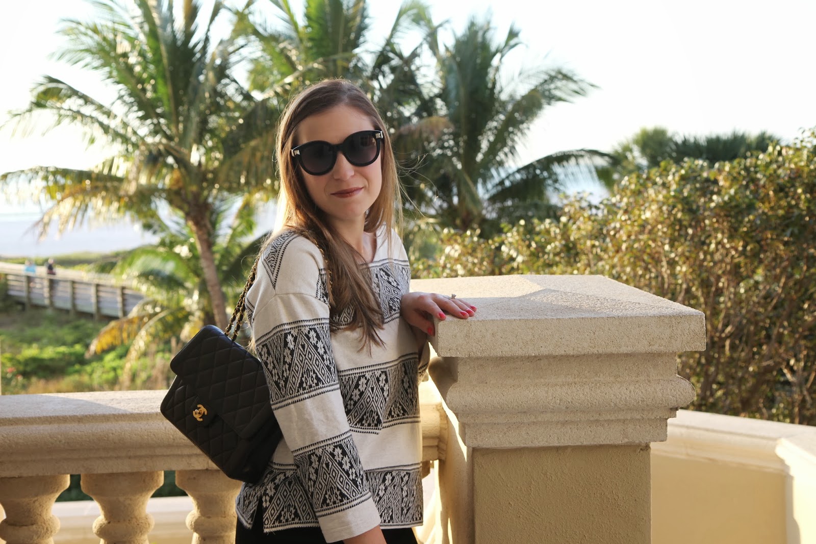 Shirt: J.Crew on sale, Skirt: French Connection (similar), Necklace: J.Crew, Sunglasses: Valentino, Shoes: J.Crew (LOVE these) Purse: Kate Spade I love
