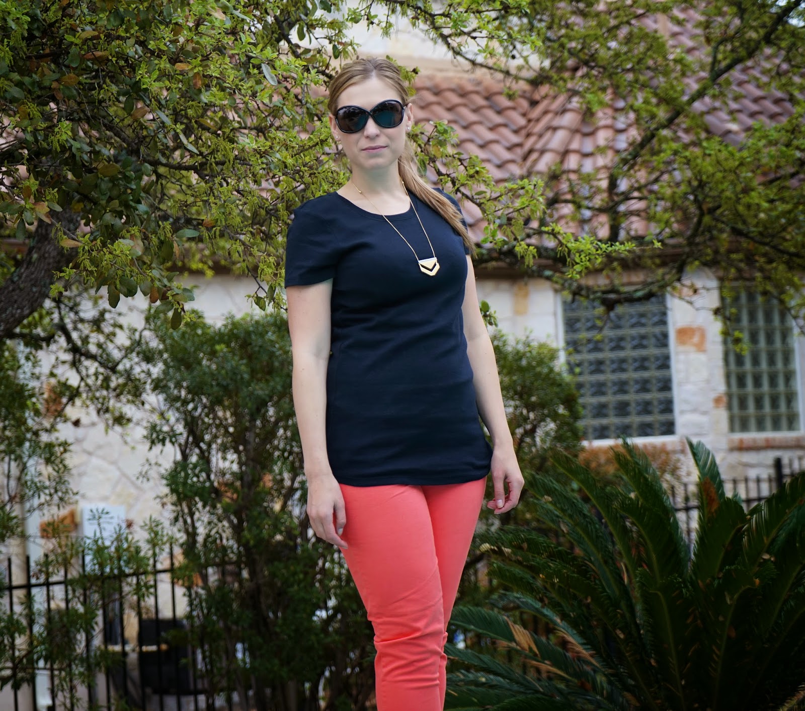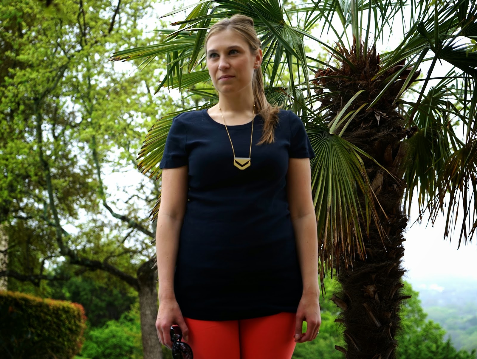 Shirt: J.Crew, Pants: Gap, Sandals: Tory Burch, Sunnies: Tom Ford, Necklace: Madewell