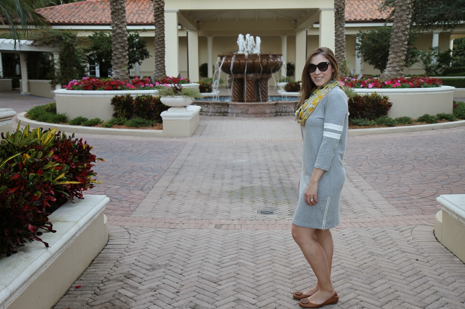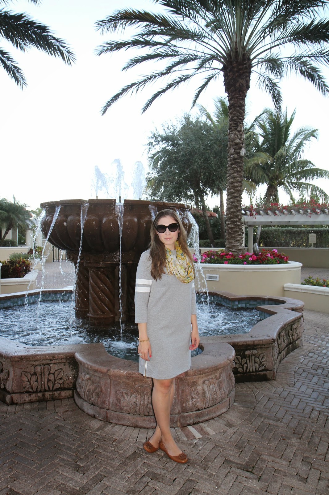 Dress: J.Crew, Scarf: Whistles (simliar), Sunnies: Valentino, Shoes: Tory Burch