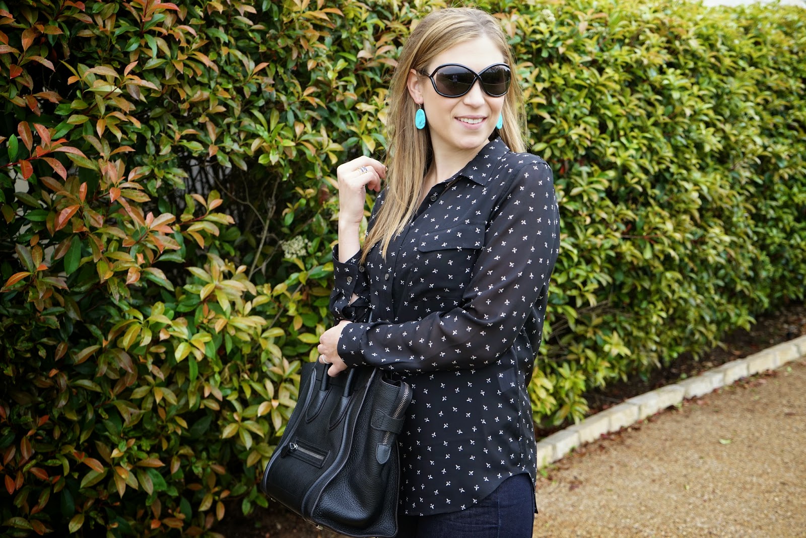 Shirt: Equipment (similar, on sale), Jeans: J.Crew, Shoes: Tory Burch, Earrings: similar, Sunnies: Tom Ford