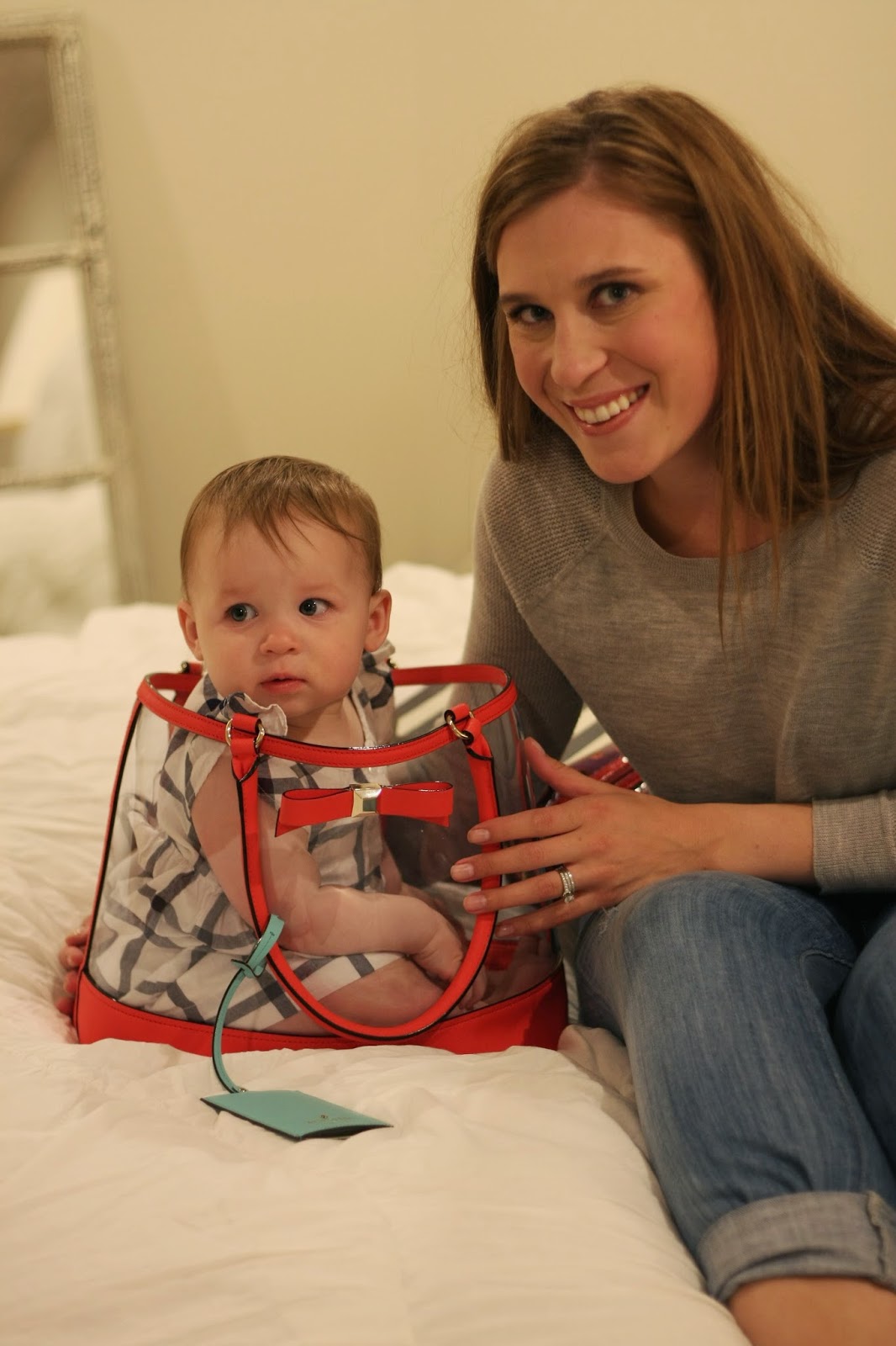 Sweater: J.Crew, Jeans: Vince, Shoes: Tory Burch, Tote: kate spade new york c/o,Watch: kate spade new york c/o, Bracelets: J.Crew, Stella & Dot, Necklace: J.Crew (similar) Luggage tag: kate spade new york c/o, Sunglasses: Valentino