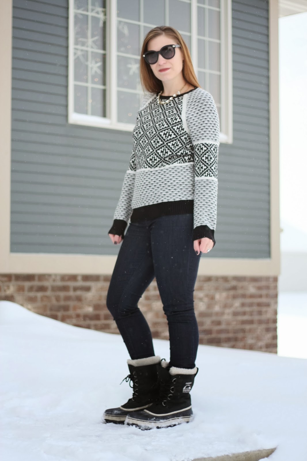 What a busy week this has been! My sister came to visit along with one of my cousins. It was so fun to see them, but sure made the week fly by! When I saw this sweater, I knew I had to have it. I am always such a sucker for black and white. My Sorels are one of my favorite winter shoes. I love them because they’re easy to slide on and off and they’re really warm. I added some additional styles to check out below! Hope you all have a great weekend!