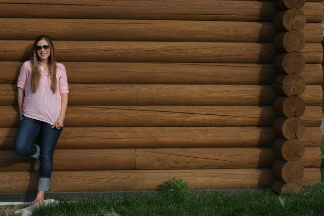 On Monday night my husband and I went to a ranch for a pig roast and brought our daughter, Dahlia. We had a blast. The scenery was amazing. We couldn’t have asked for a more perfect setting. Here are a few shots from that night. I love the shirt I am wearing as it is really easy to dress up or down. It has vertical stripes so it makes you look a little leaner than you are! This blouse is on sale right now, I ended up buying it in navy as well.