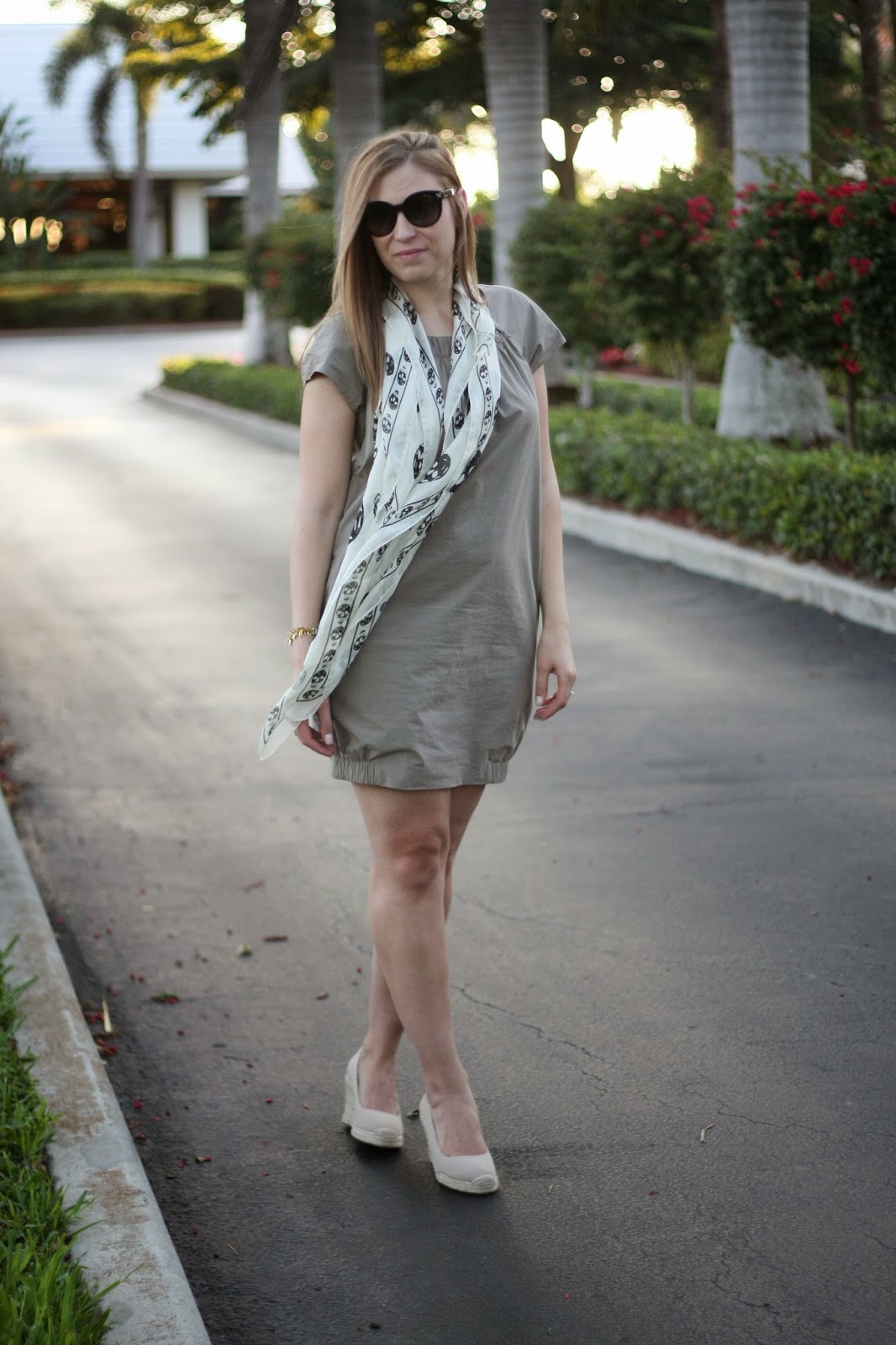 Dress: Vince (similar, love this), Scarf: Alexander McQueen, Sunglasses: Valentino, Shoes: J.Crew, Bracelet: Stella & Dot