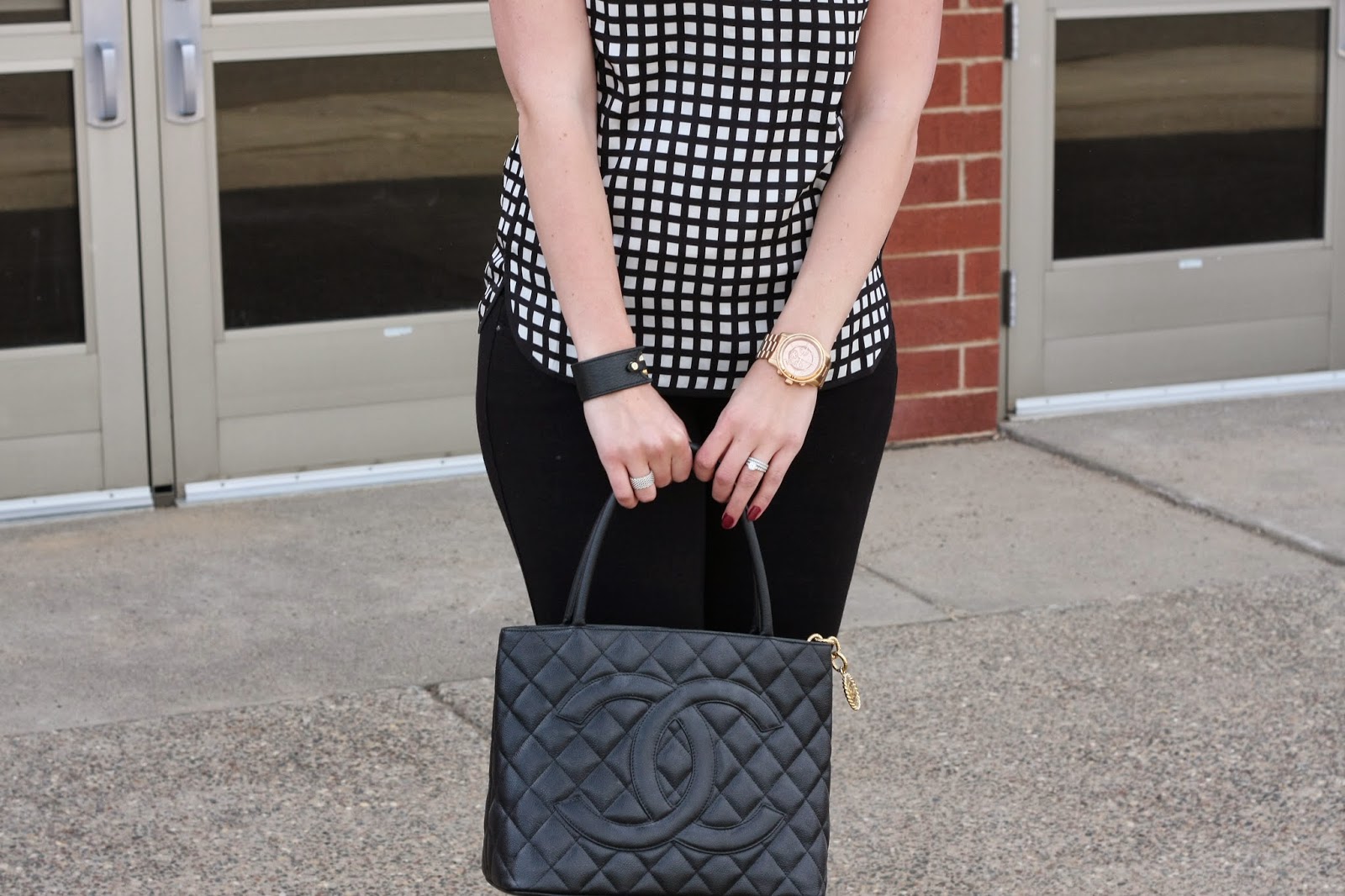 Tee: J.Crew (similar), Pants: Gap, Sunnies: Valentino, Bracelet: Tory Burch, Necklace: Stella & Dot, Watch: Michael Kors, Shoes: J.Crew (similar), Purse: Chanel, Nail Polish: Essie
